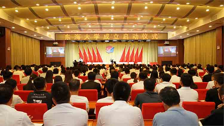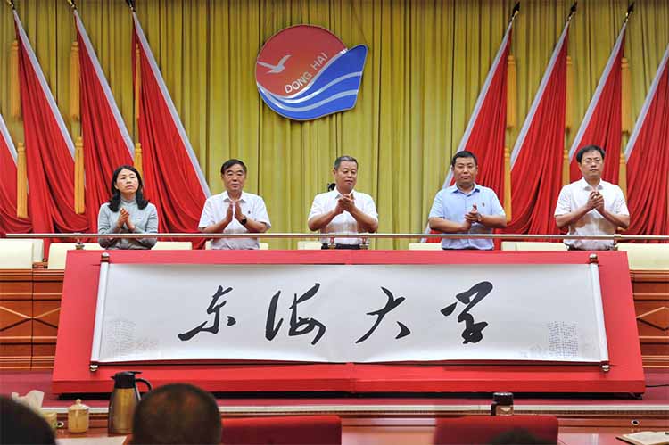 儀式開始后,首先魏建民總裁宣讀了東海集團《關于成立東海大學的決定》。隨后,魏建國董事長帶領控股集團領導走上臺,共同為東海大學正式創建揭牌。