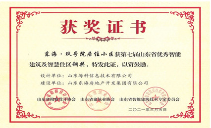 東海集團開發建設的禹城·玖號院項目獲得“第七屆山東省優秀智能建筑及智慧住區”銅獎。